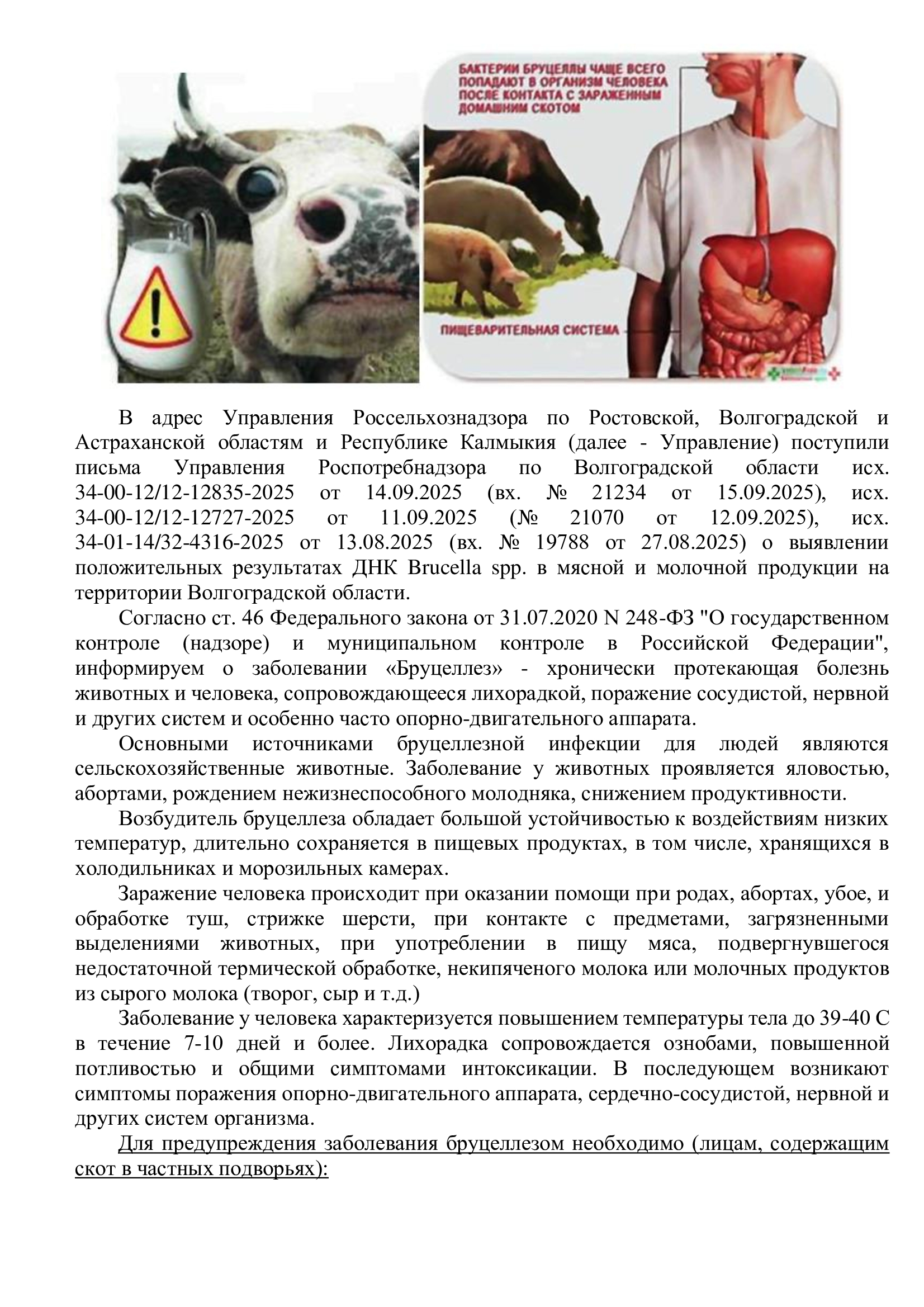 Информируем о заболевании «Бруцеллез»