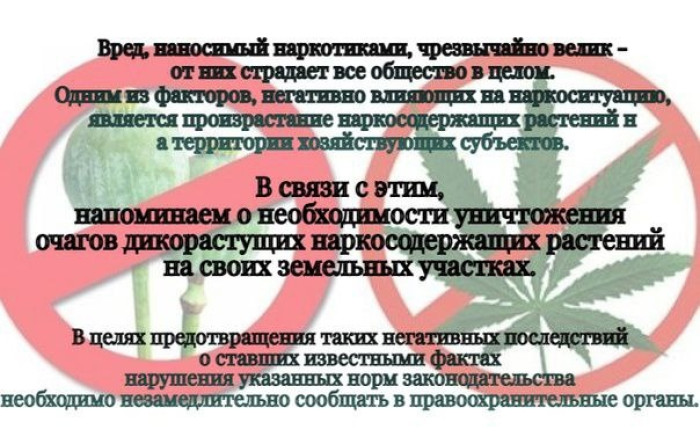 О необходимости уничтожения очагов дикорастущих наркосодержащих растений на своих земельных участках.