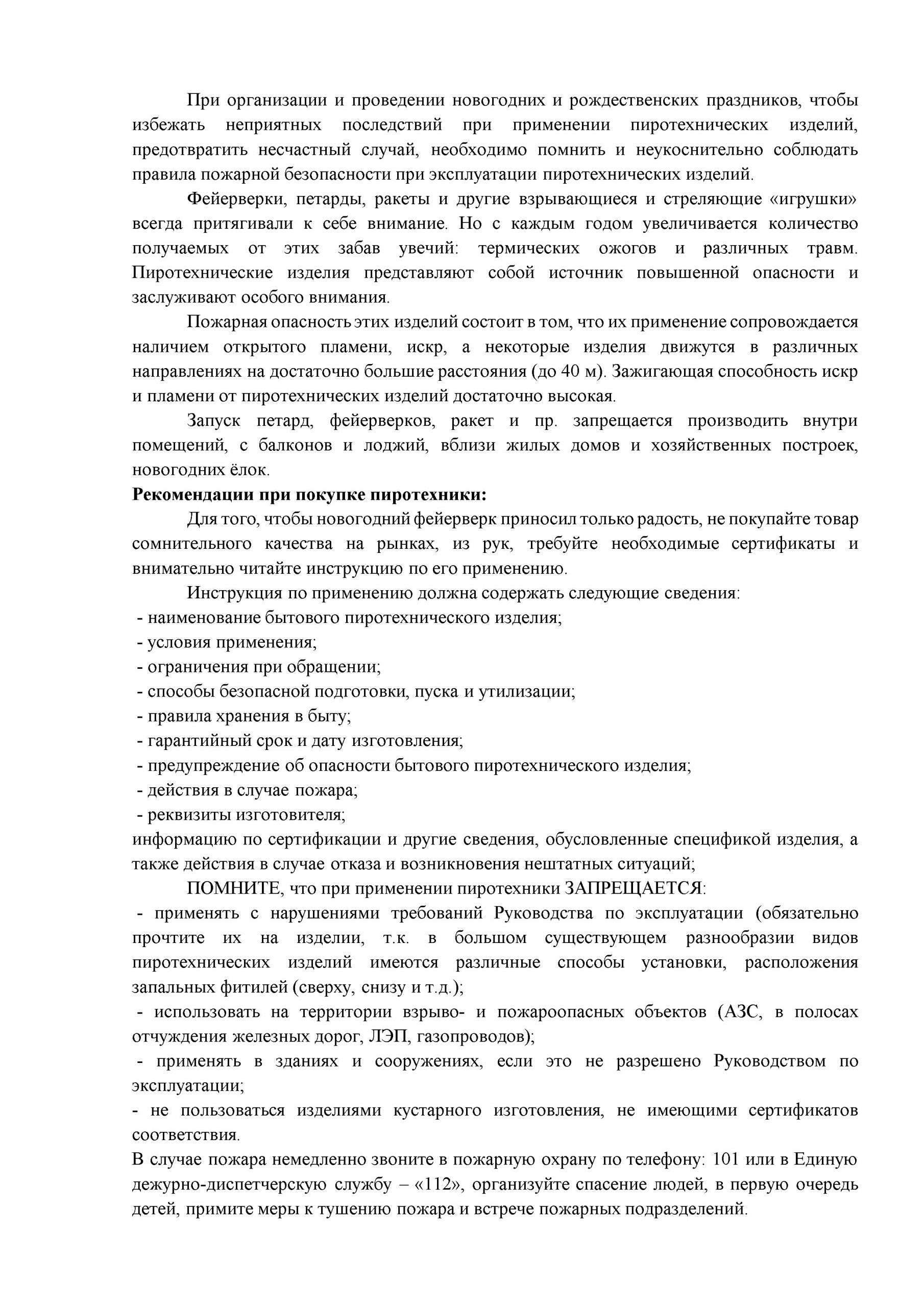 Правила пожарной безопасности при эксплуатации пиротехнических изделий.