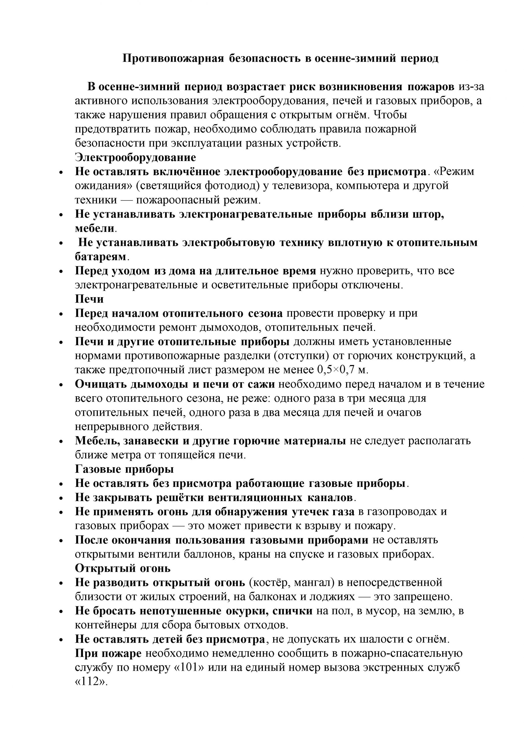 Противопожарная безопасность в осенне-зимний период