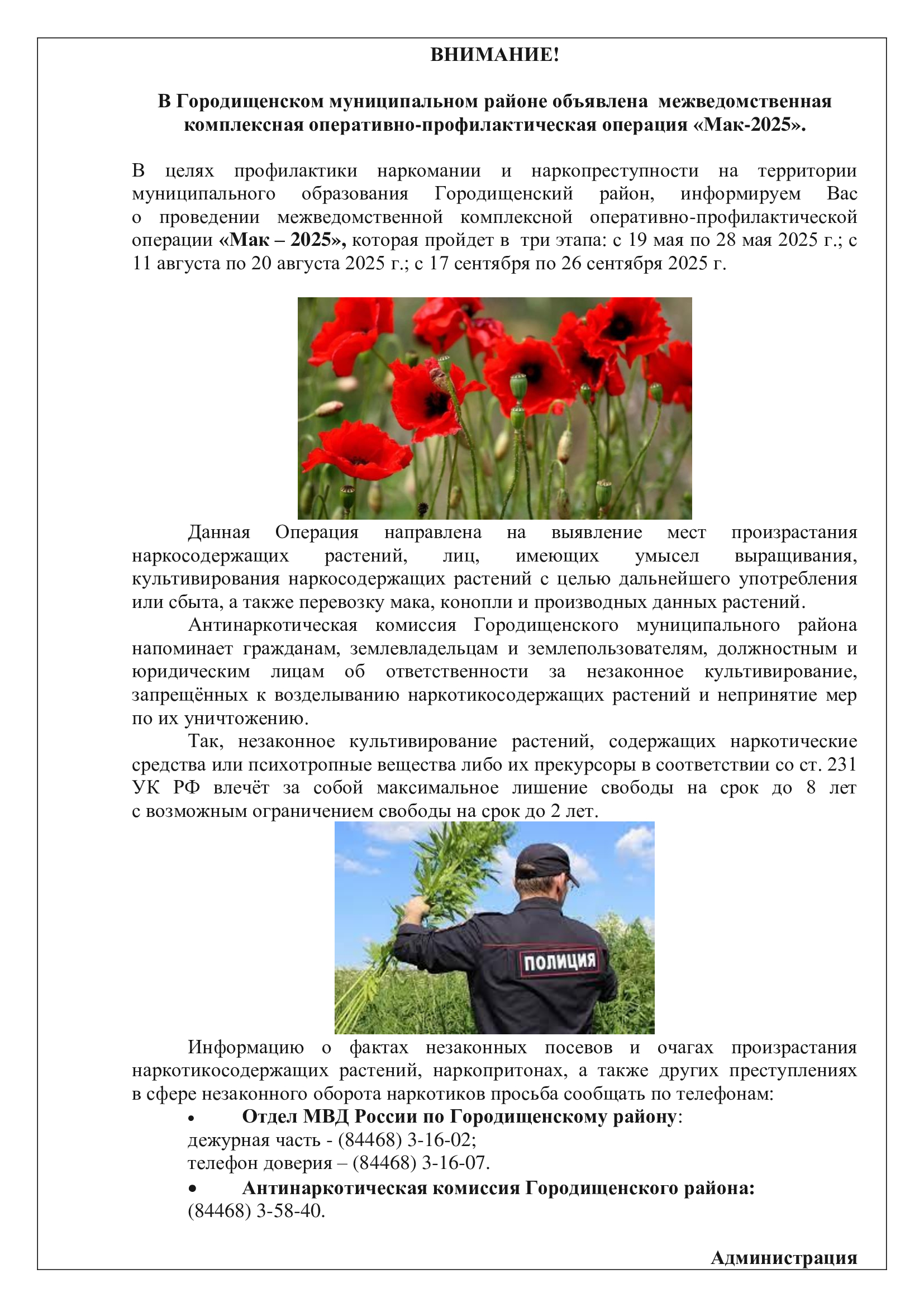В Городищенском муниципальном районе объявлена межведомственная комплексная оперативно-профилактическая операция «Мак-2025».